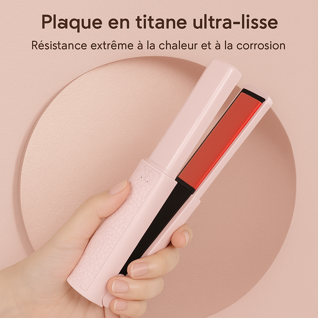 Le lisseur sans fil Beaut'ezz Liss se glisse facilement dans votre sac pour des retouches coiffure à tout moment.