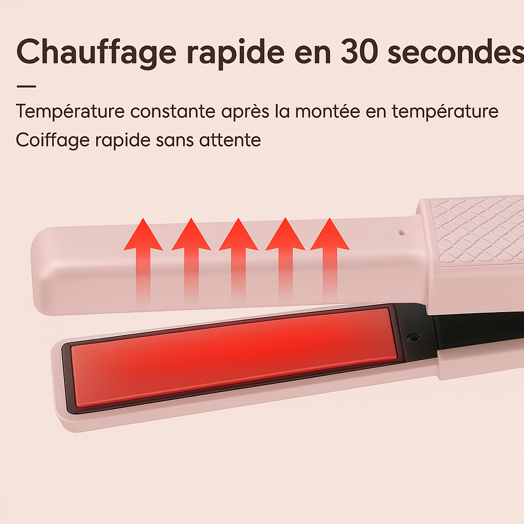En déplacement ? Envie de praticité ou simplement pressée ? Le lisseur sans fil Beaut'ezz Liss est ce qu'il vous faut ! Il est LA réponse à vos demandes urgentes. Une fois chargé, celui-ci est prêt à vous fournir un coiffage de qualité dans les plus brefs délais.